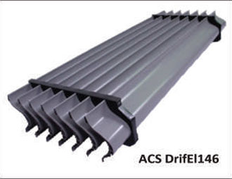As illustrated in the figure, the outgoing air is first guided on to the surface of the drift eliminators. This drift laden air then traverses the upward path of the drift eliminator. At the point of the first direction change ACSDrif—El146 introduces a water entrapment notch. A majority of water droplets are trapped at this notch and channel back Into the system.